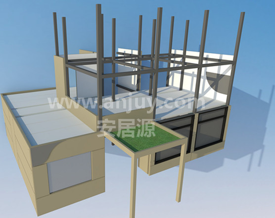 組裝房 - 特點(diǎn)1、材料環(huán)保,可回收利用;2、建設(shè)速度快,施工周期短;3、材料工廠化加工,現(xiàn)場(chǎng)裝配化施工,減少了施工對(duì)環(huán)境的影響,實(shí)現(xiàn)